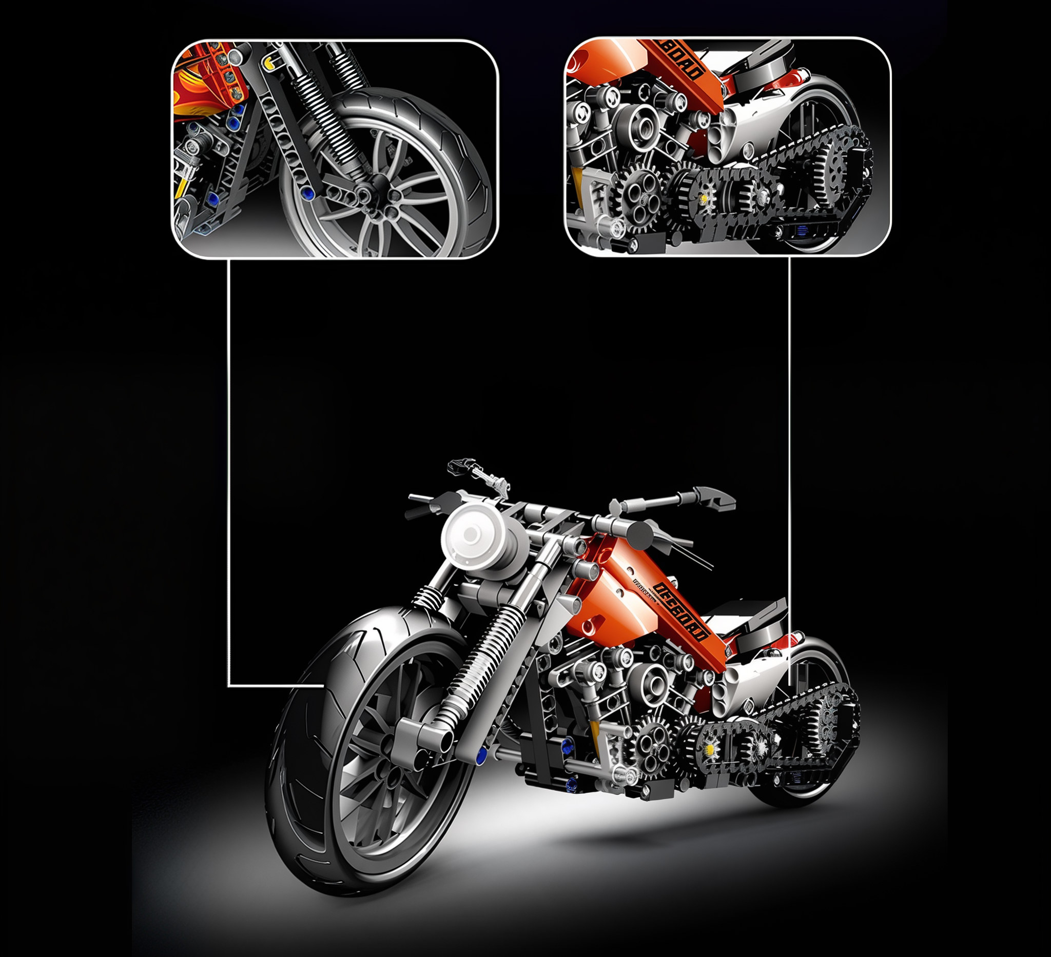 Zestaw „Motor Chopper Amerykański” pozwala zbudować realistyczny model motocykla w stylu off-roadowym. Konstrukcja łączy nowoczesny design z zaawansowanymi elementami mechanicznymi. Idealny dla młodych miłośników motoryzacji i techniki, a także jako dekoracja po złożeniu.