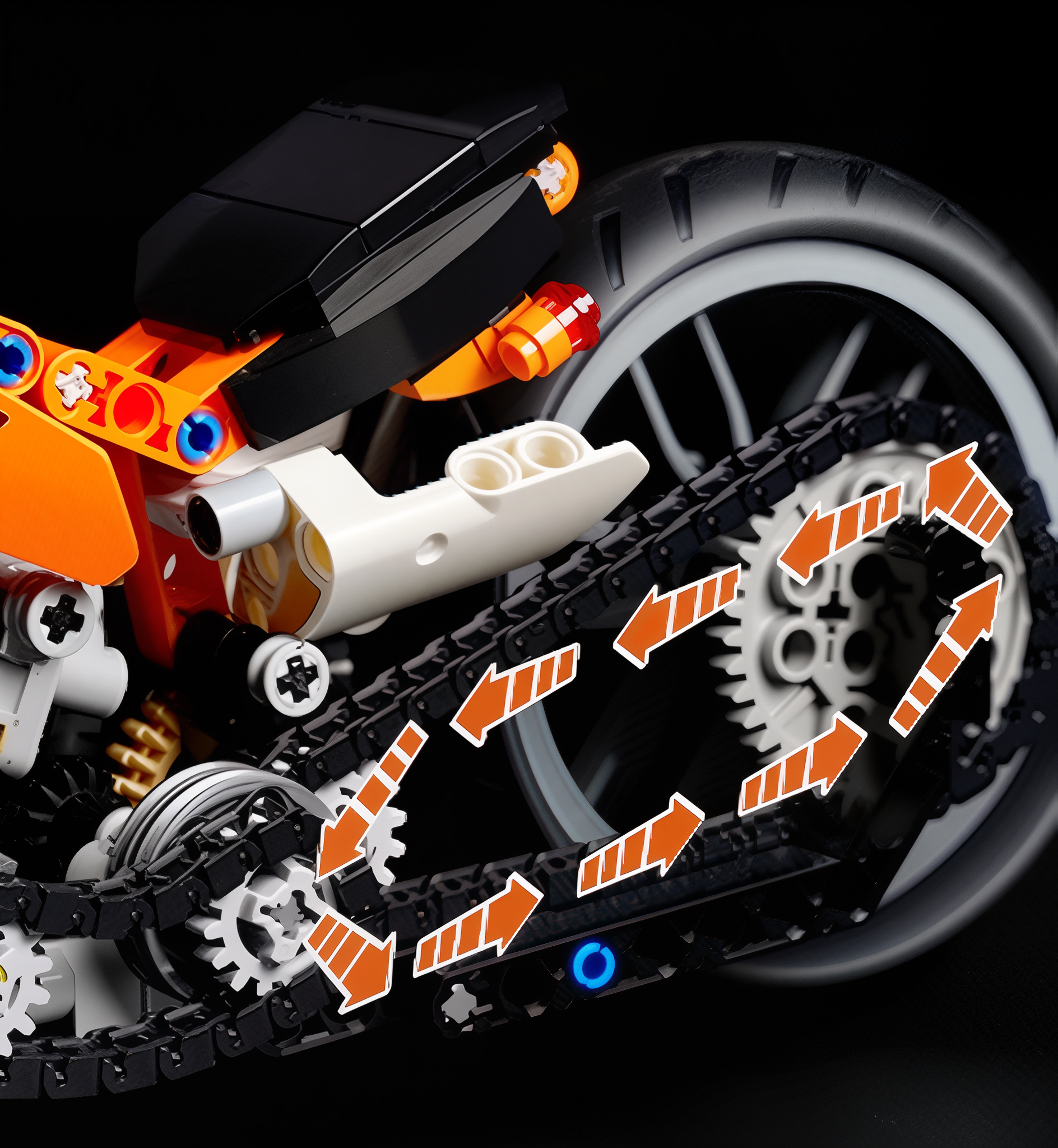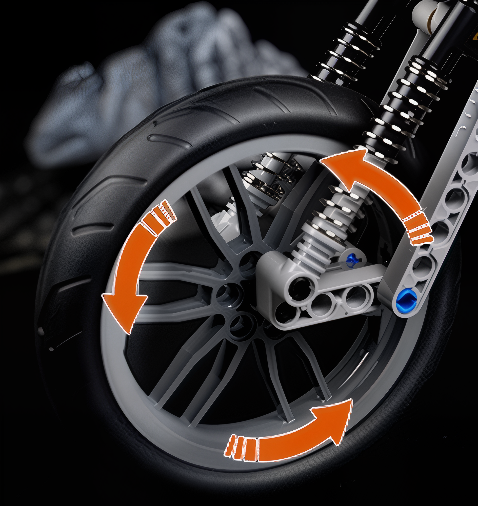 Ruchome mechanizmy: Zawieszenie, układ kierowniczy, tłoki i napęd łańcuchowy.