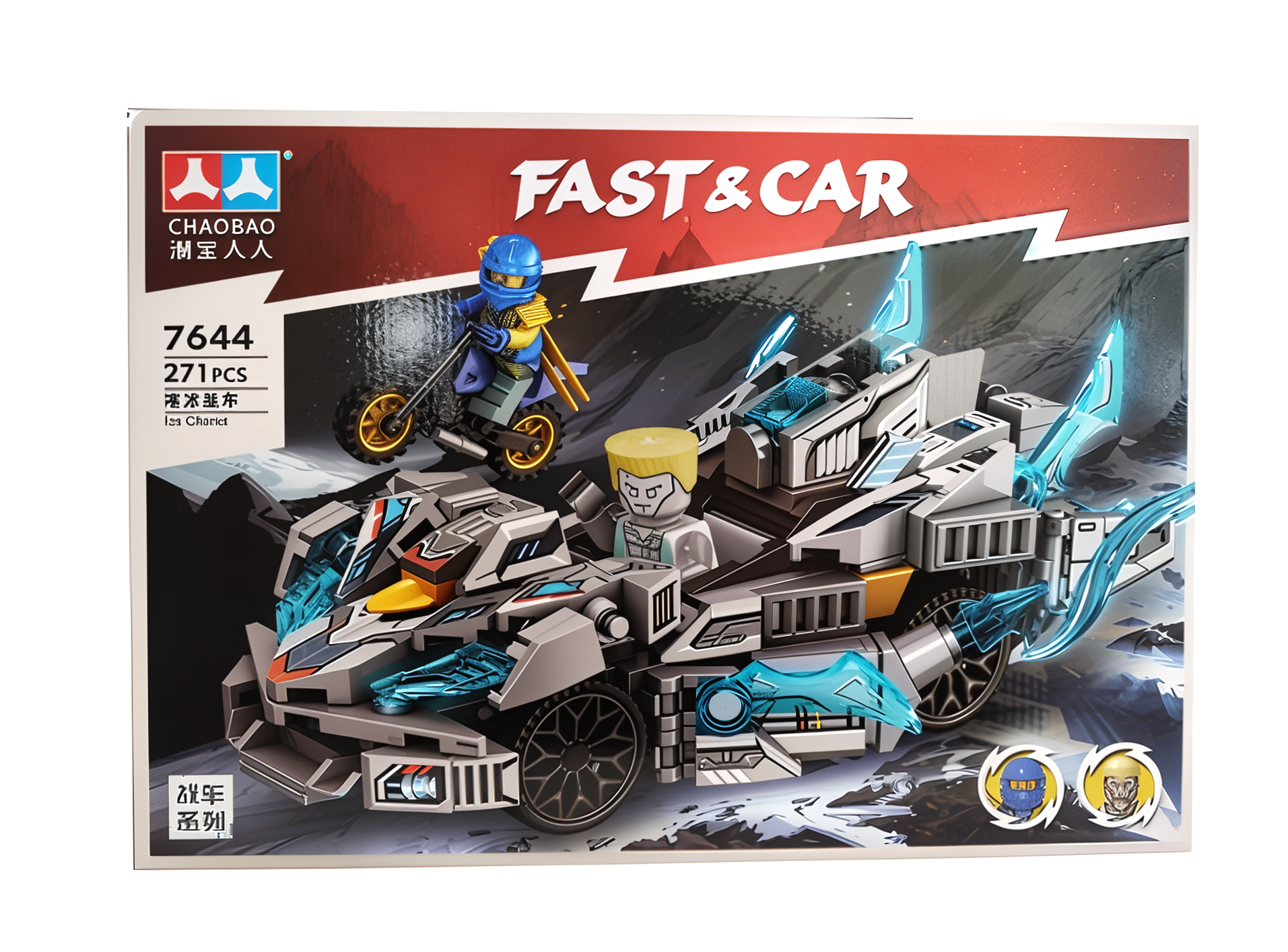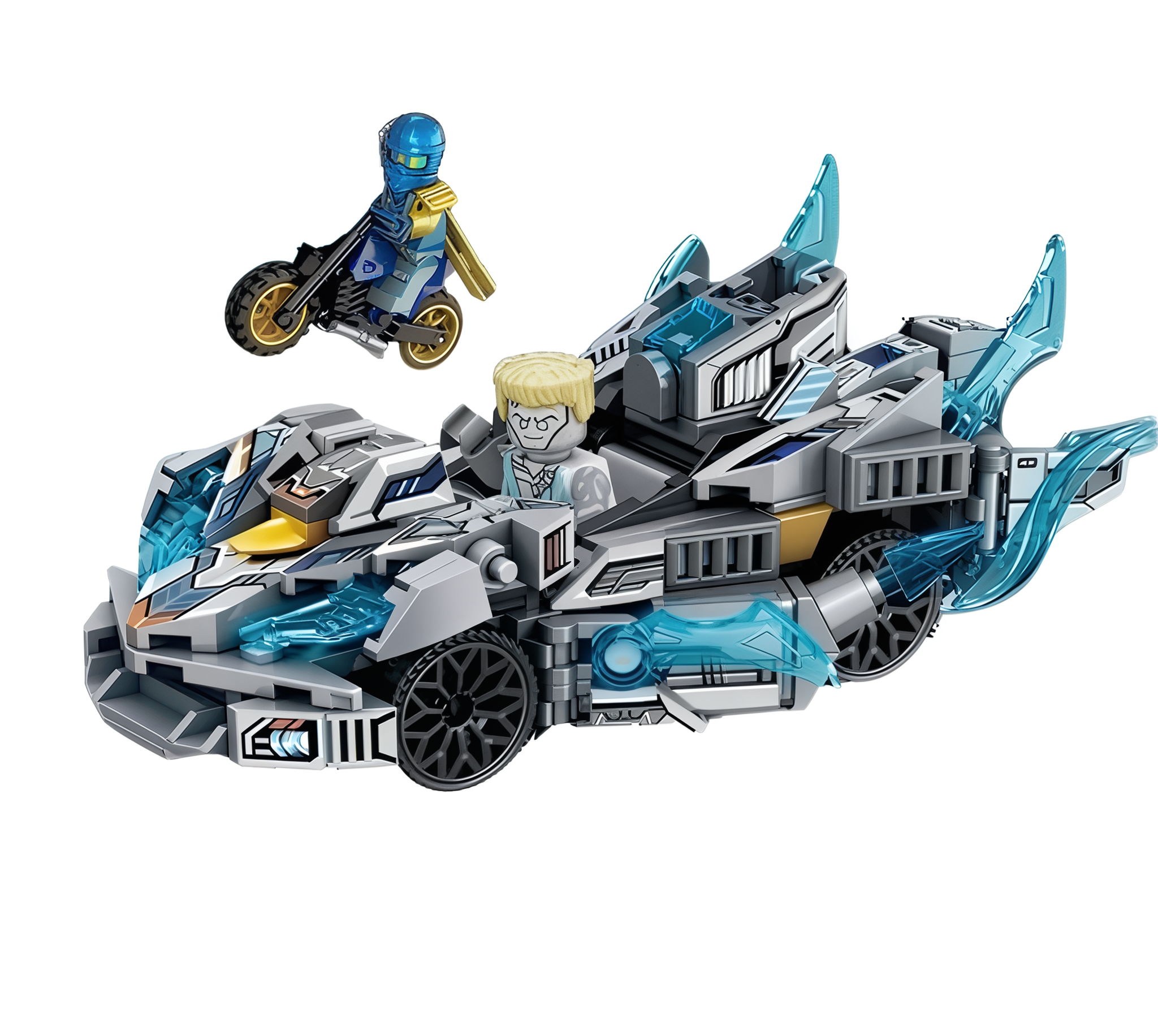 Figurki: 2 minifigurki – wojownik lodu oraz motocyklista w niebieskim pancerzu
