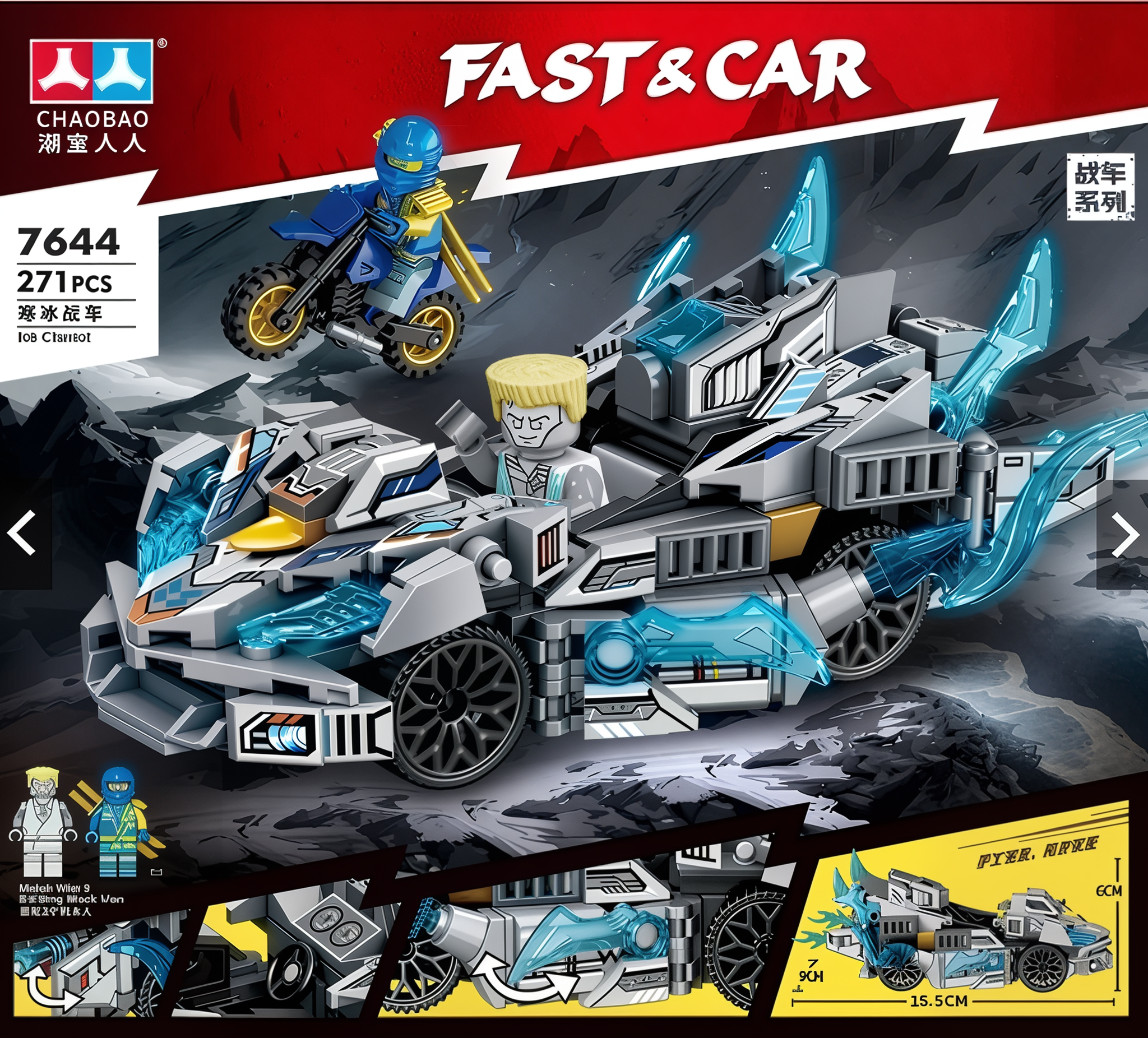 Pojazd: Stylizowany „Ice Chariot” z ruchomymi elementami i niebieskimi „lodowymi” płomieniami