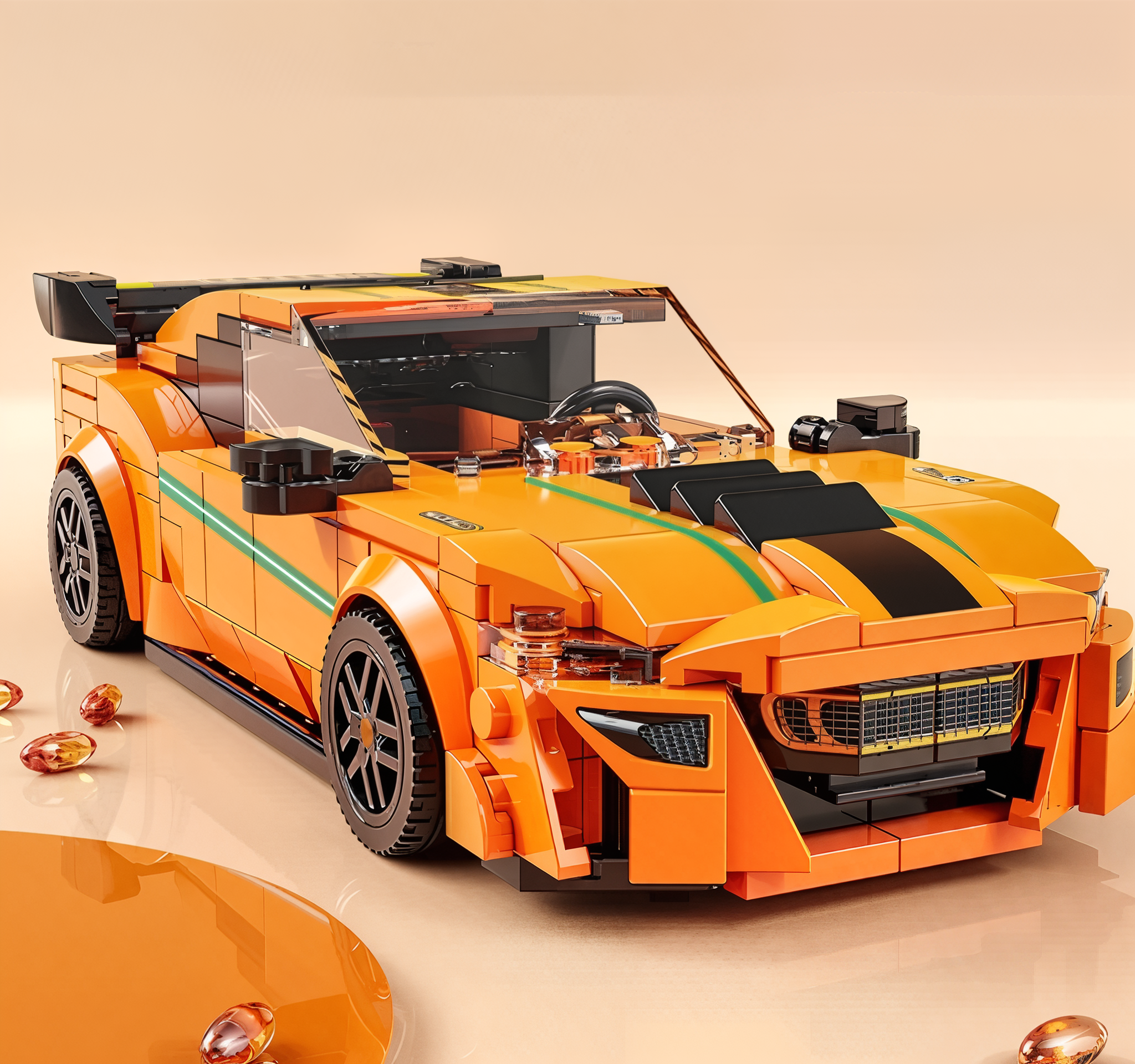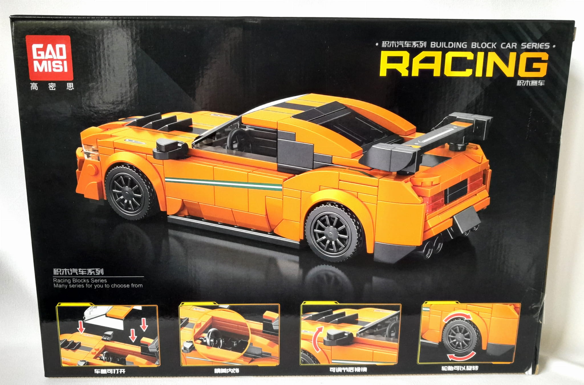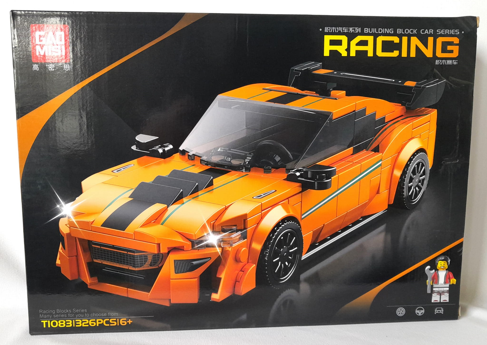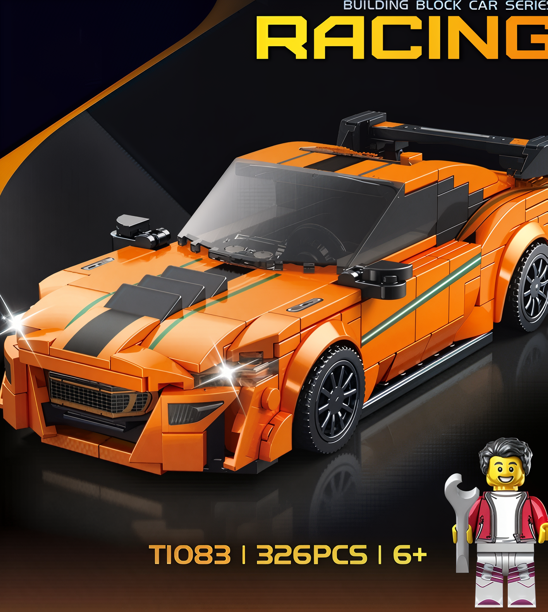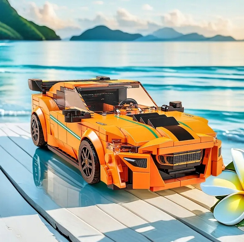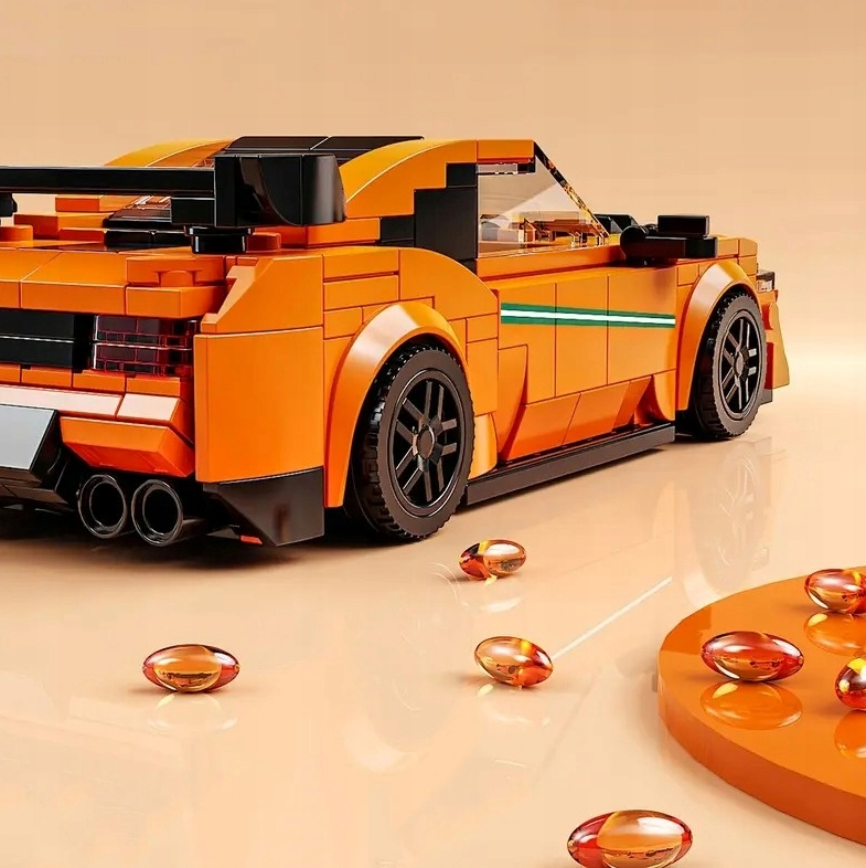 Auto 03 – Zestaw Klocków Pomarańczowy Samochód Wyścigowy w Gablocie
