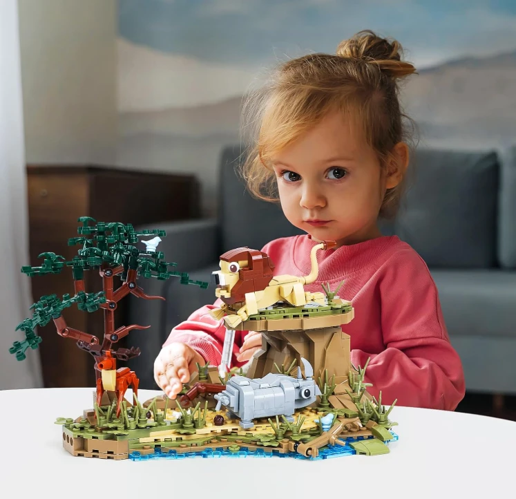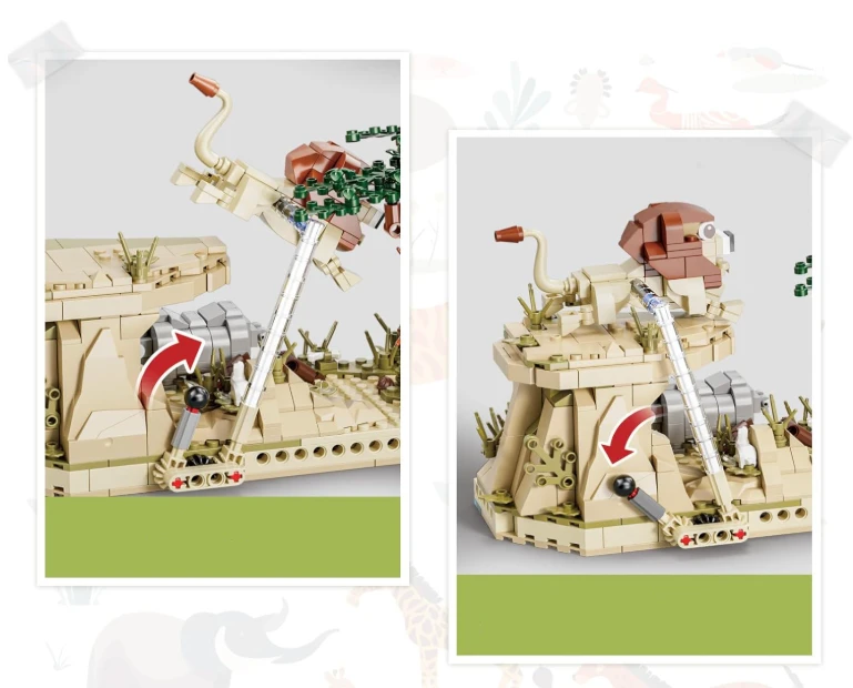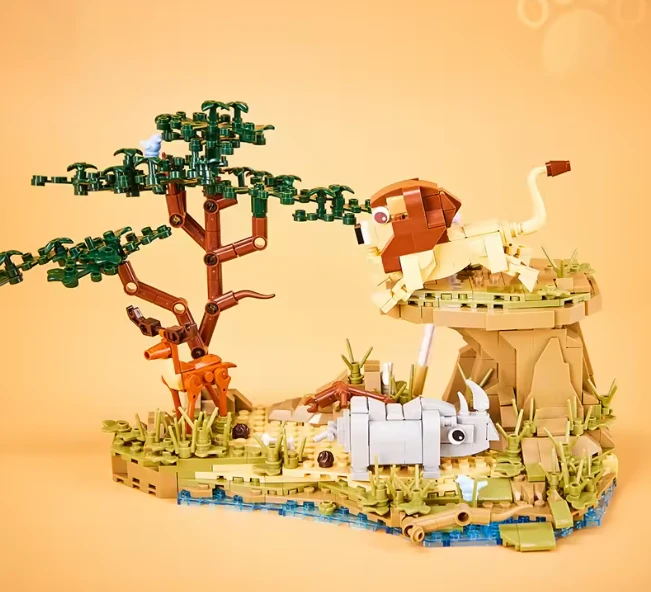 Klocki Zwierzęta Zestaw Klocków Tropikalna Sawanna Ruchomy Lew Animal 08