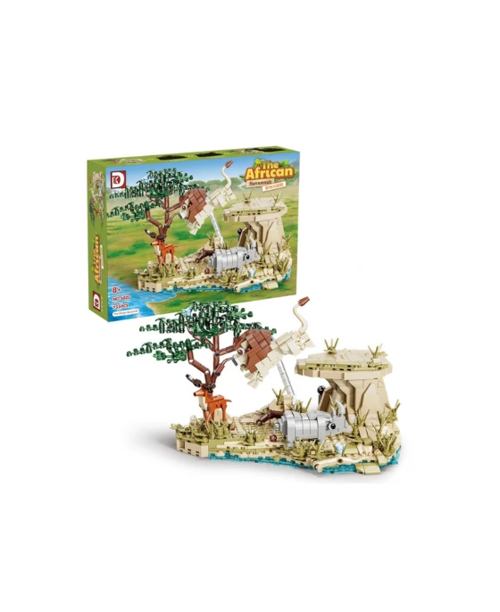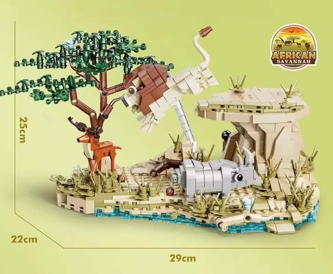 Zestaw klocków „Sawanna” to rozbudowany komplet konstrukcyjny, który pozwala stworzyć efektowną scenę inspirowaną dziką naturą Afryki.