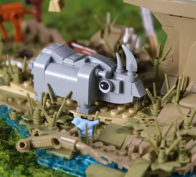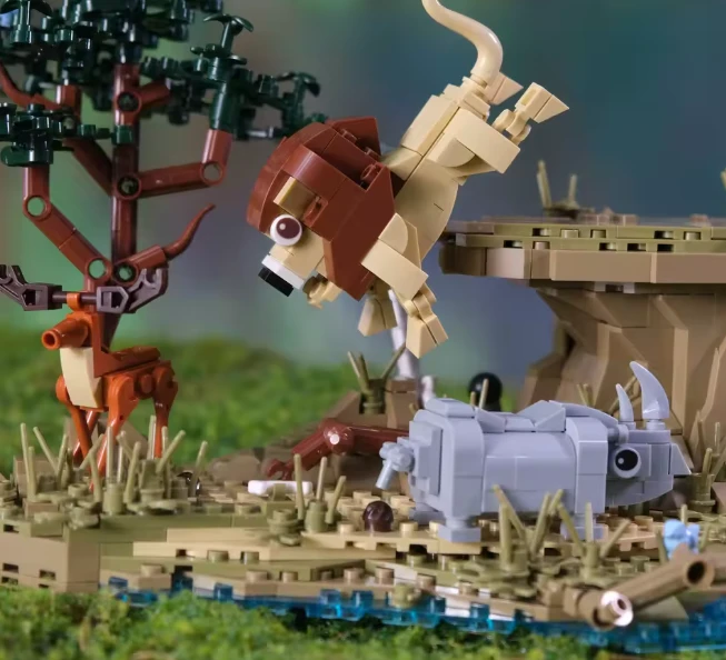 Aż 755 elementów umożliwia zbudowanie szczegółowej makiety z realistycznymi zwierzętami oraz charakterystycznym krajobrazem sawanny.