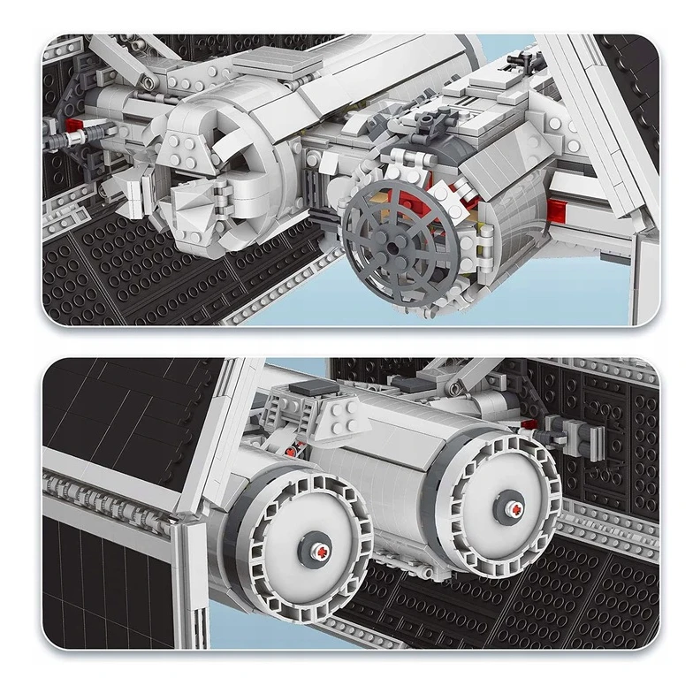 ⭐ Duża ilość elementów sprawia, że model szczyci się niesamowitym poziomem szczegółowości. Na zewnątrz widoczne są skomplikowane elementy konstrukcyjne, jak np. otwory wentylacyjne/silniki, które dodają modelowi większej głębi i realizmu.