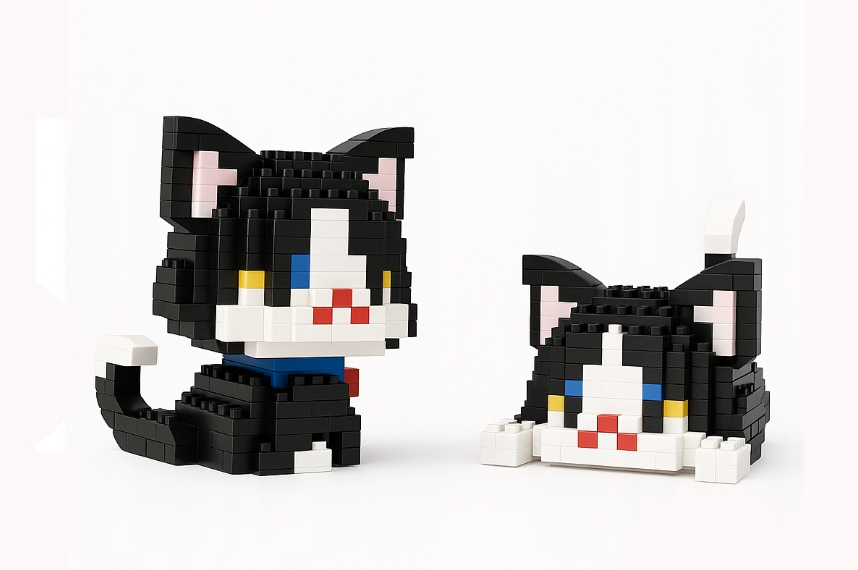 Ten mini zestaw to doskonała zabawa dla dzieci i dorosłych, którzy kochają koty oraz kreatywne konstrukcje.