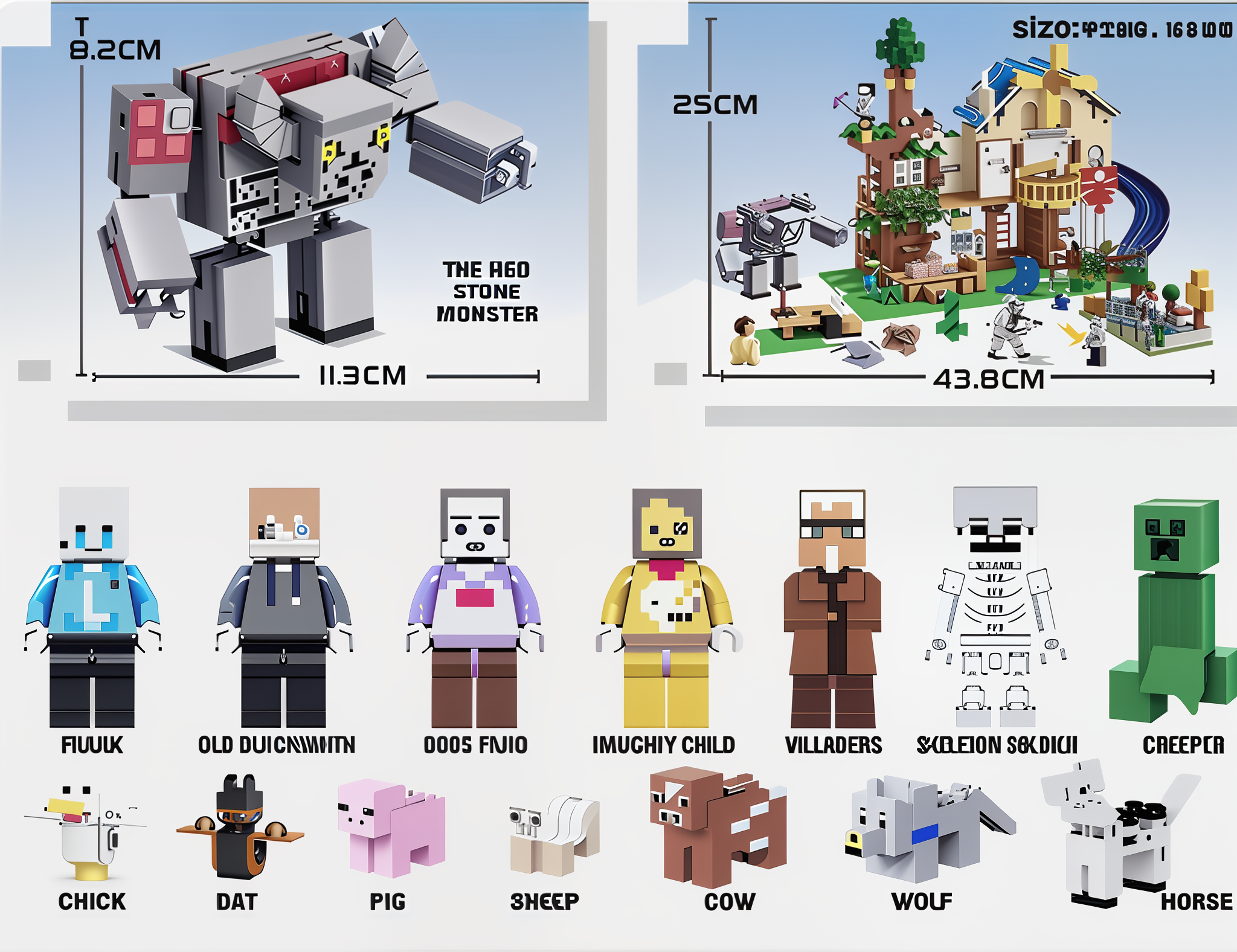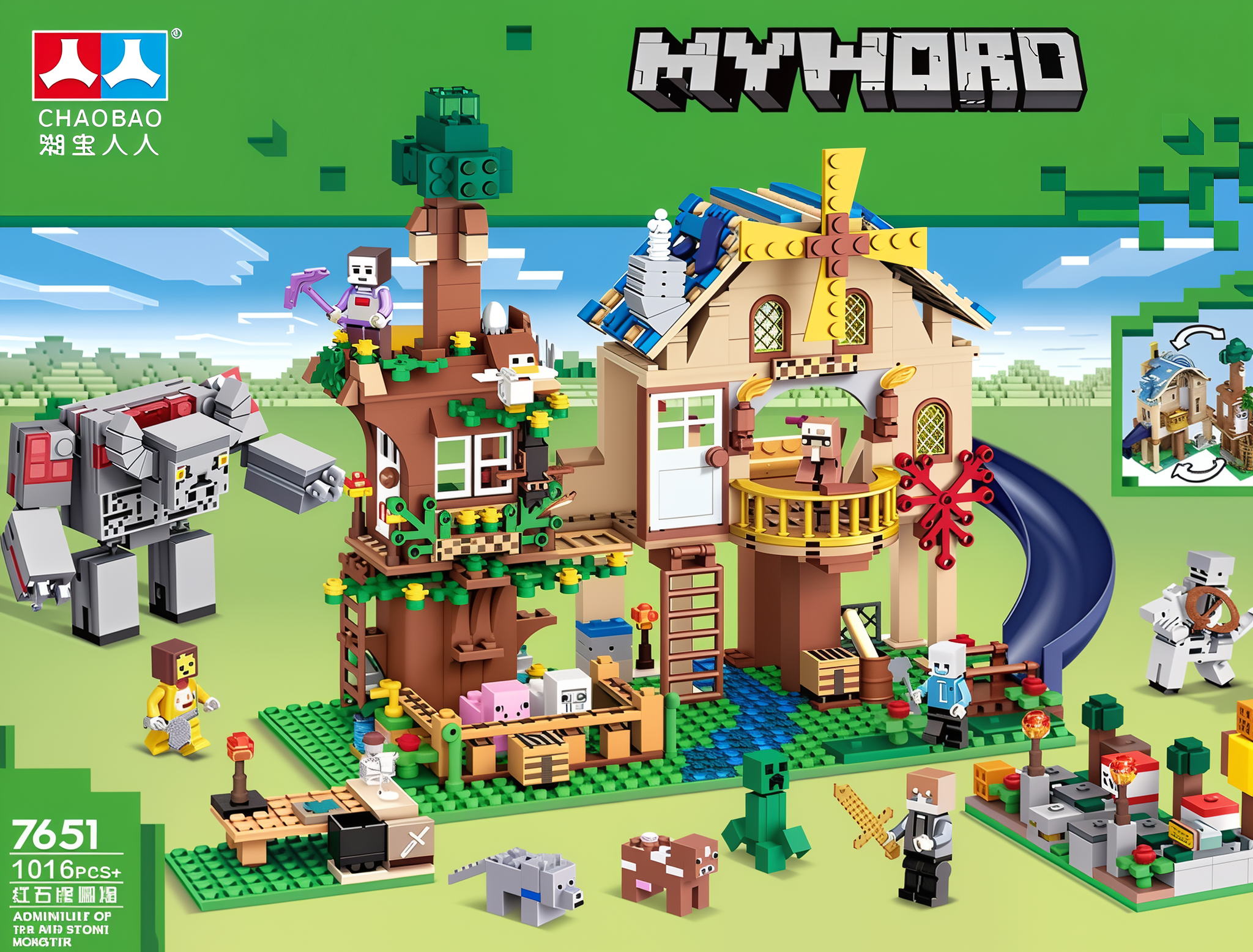 Zestaw „Minecraft Młyn 04” od ChaoBao to rozbudowany komplet konstrukcyjny z serii MYWORD, inspirowany światem gry Minecraft. Dzięki ponad 1000 elementom dzieci mogą zbudować szczegółowy młyn z ruchomym wiatrakiem, drzewo-dom, ogrodzenia, zjeżdżalnię i wiele innych elementów otoczenia. To doskonała propozycja dla młodych konstruktorów i fanów przygód w klockowym świecie.