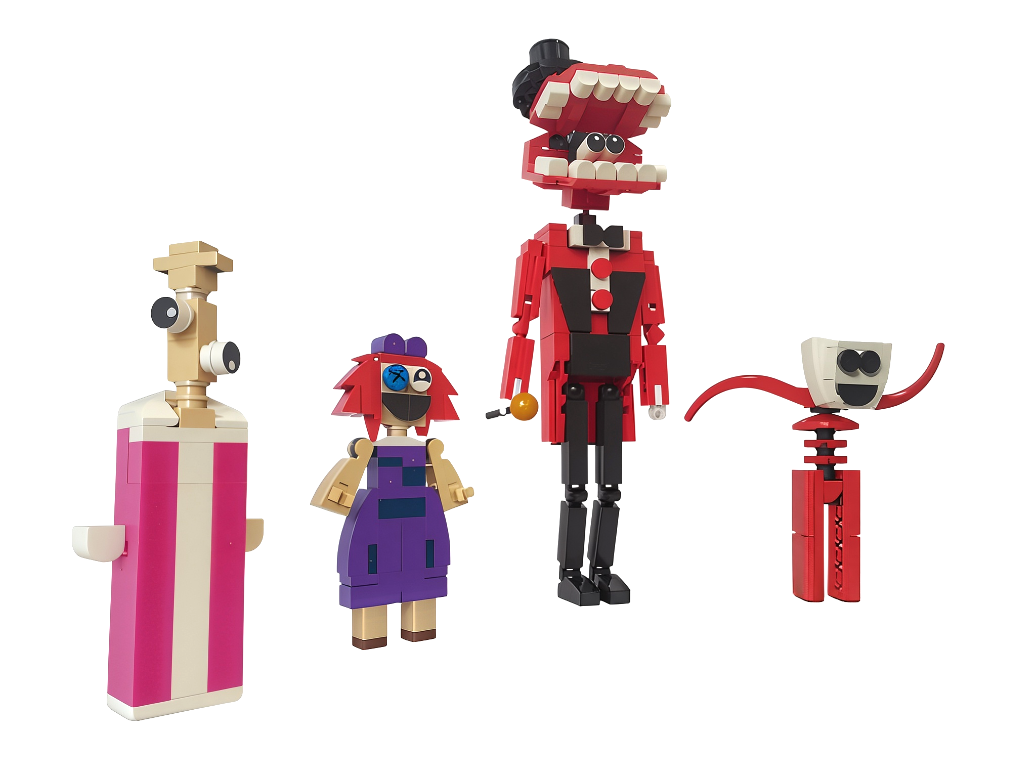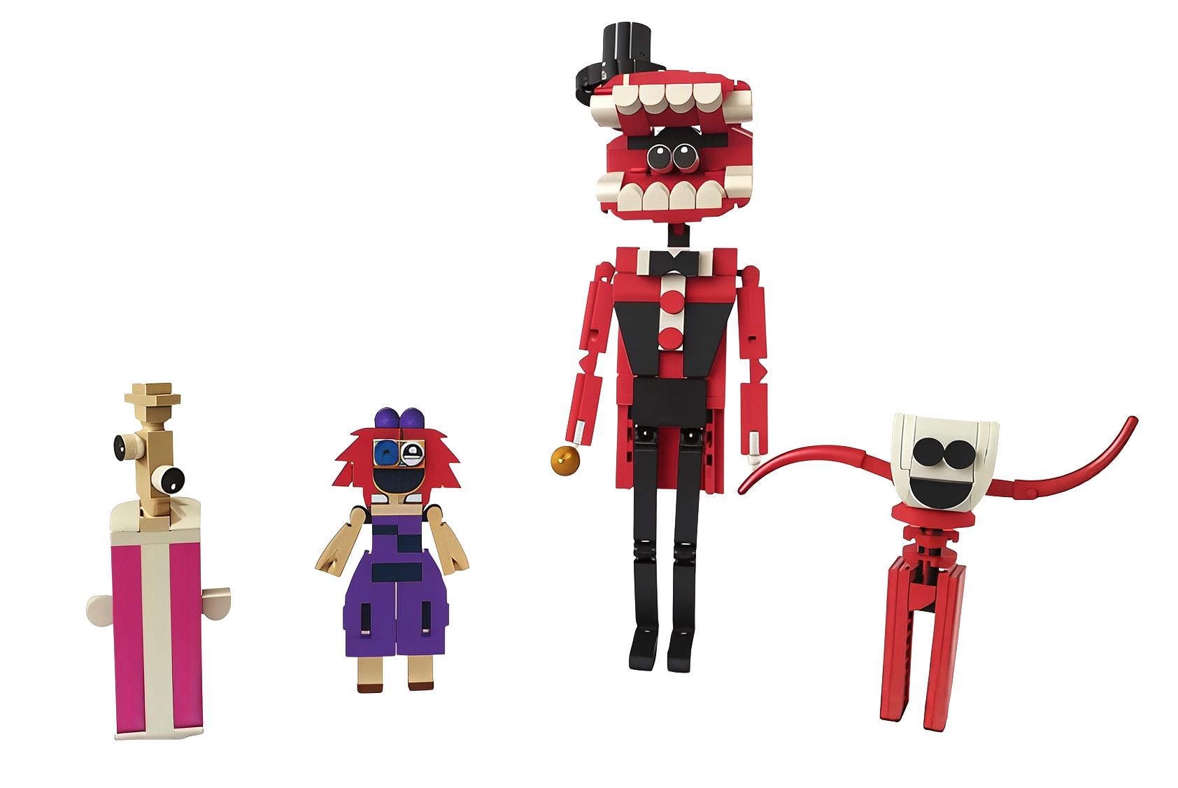 Zbuduj własną cyrkową ekipę z wyjątkowymi postaciami z uniwersum „The Amazing Digital Circus”! W zestawie znajdziesz cztery kultowe figury: Caine’a, Gangle, Ragathę oraz Kingera – gotowe do odegrania niezwykłych historii.