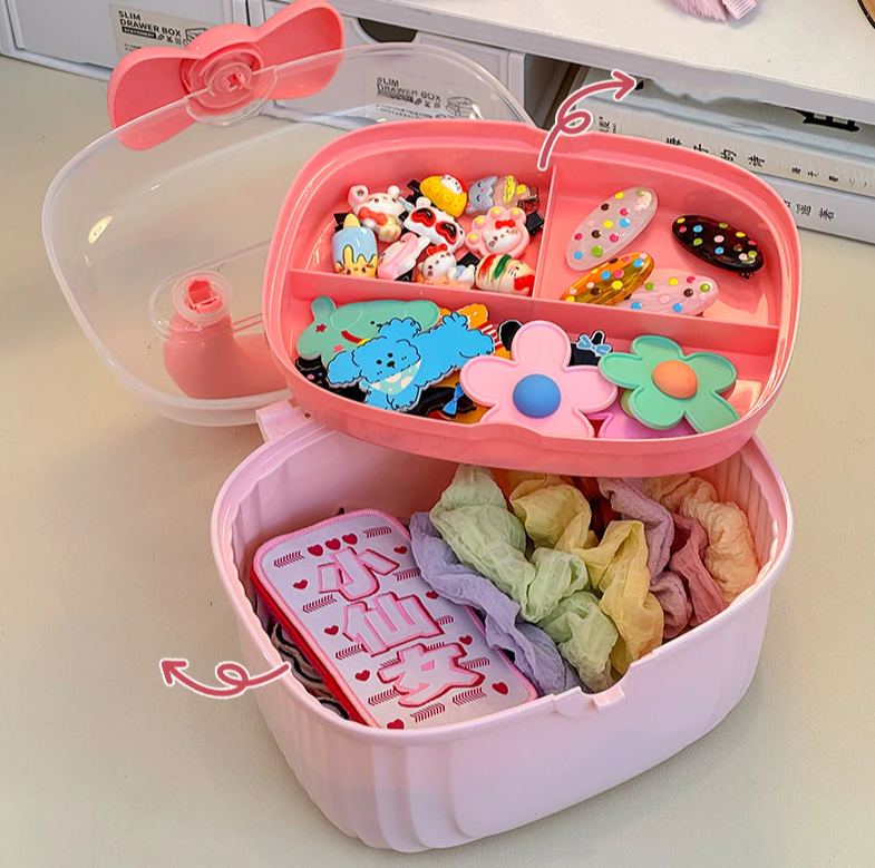 Plastikowy pojemnik na akcesoria, gumki, biżuterię i ozdoby