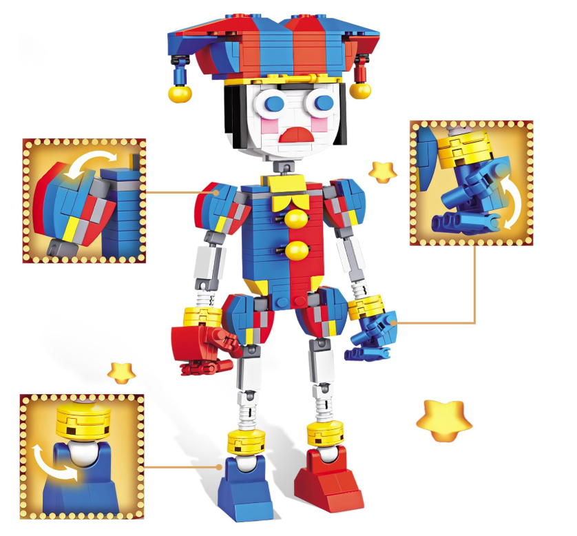 Wejdź do świata cyrkowej magii i zbuduj wyjątkową figurkę Pomni – kolorowego klauna z mechanicznego cyrku! Ten barwny zestaw to idealna propozycja dla dzieci, które lubią oryginalne postacie i kreatywną zabawę.