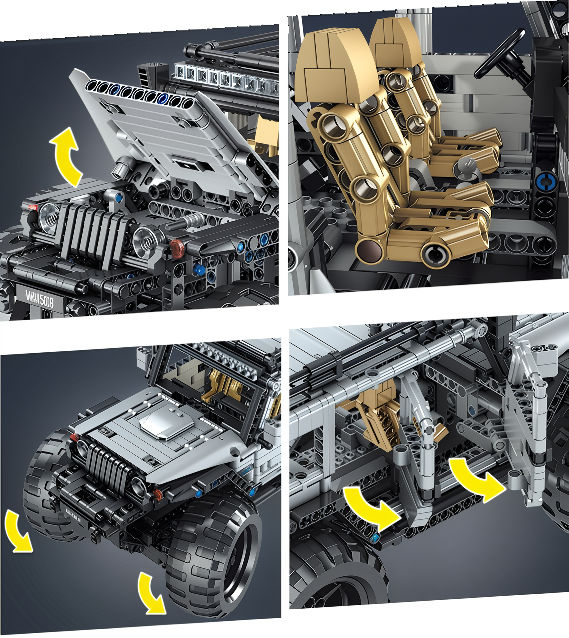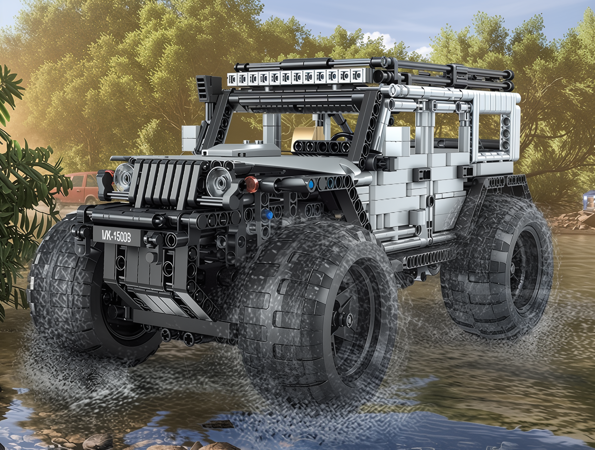 Zestaw kloców składający składający się z 1288 elementów przedstawiający samochód terenowy zdalnie sterowany - kontroler w zestawie