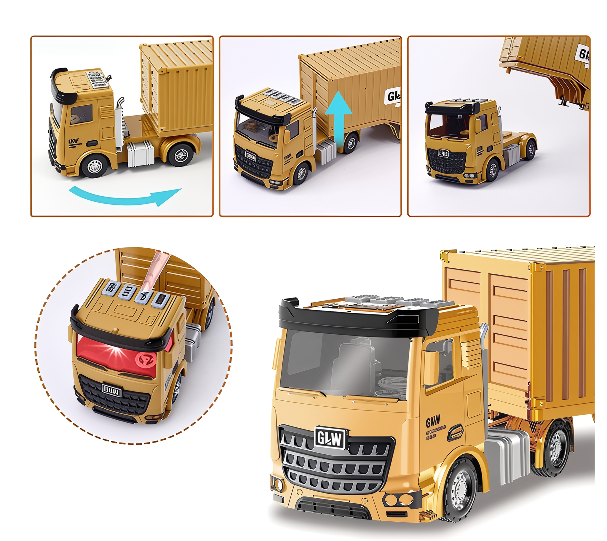 ✅ Świetlne efekty LED – Ciężarówka wyposażona jest w oświetlenie LED, które uatrakcyjnia zabawę i sprawia, że zestaw wygląda jeszcze bardziej imponująco.
